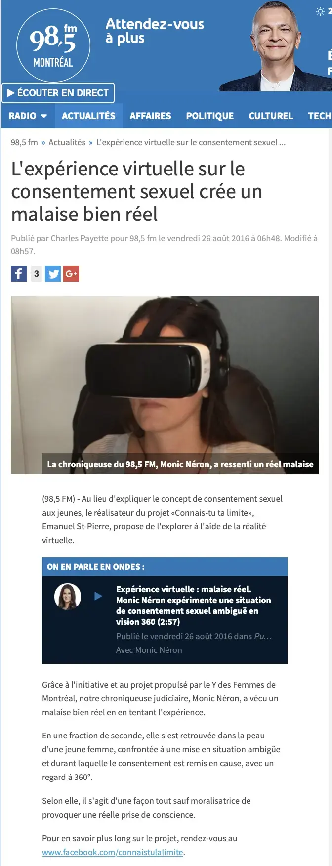 « Connais-tu LA limite ? » : la réalité virtuelle au service du consentement sexuel